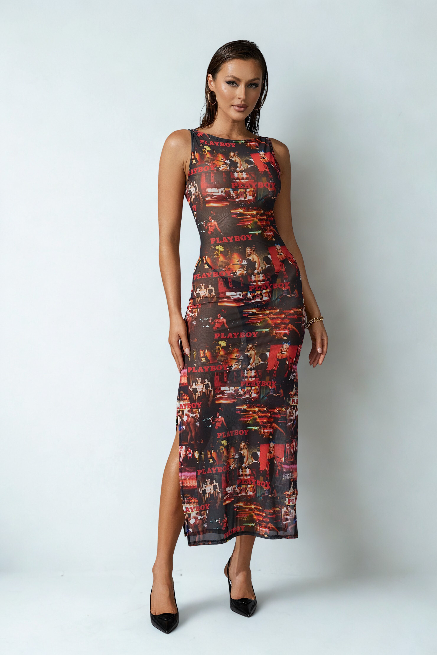 Refresh availabilityIntroducing the Cupid Dress; crafted from a recycled mesh fabric, printed with archived photographs, this dress hugs your curves in all the right places, enhancing your silhouette with its figure-flattering fit. With it's midi length and sexy side splits, this dress is sure to turn heads and make a bold statement wherever you go.