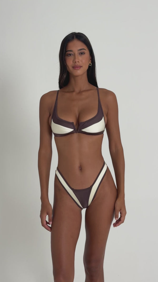 Refresh availabilityOur most dynamic top is designed to flatter and support, with a V-wire front and sculpted paneling. Finished with a statement gold FAE clasp at the back. Crafted in the finest quality sustainable Nylon.