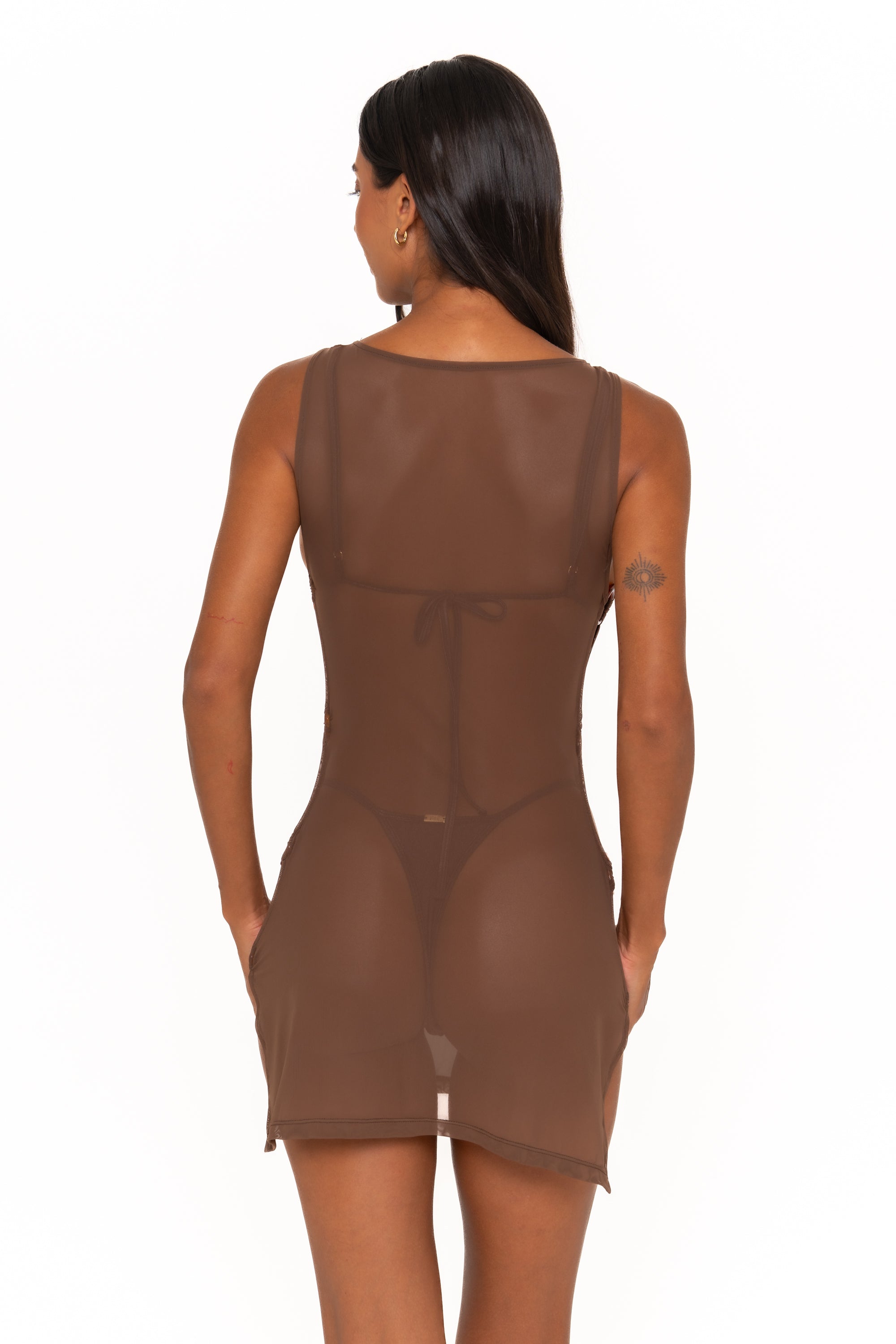 Refresh availabilityMeet the Moana Dress, crafted from recycled mesh fabric, it hugs your curves beautifully, with side cutouts and resin rings for added allure.