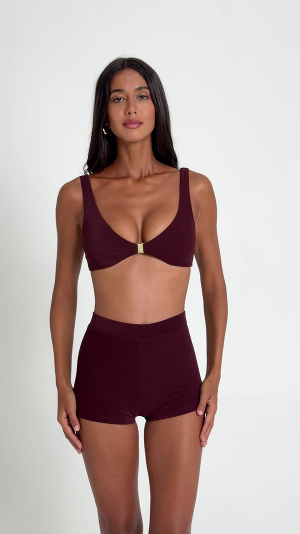 Refresh availabilityAn 80s-inspired beach short designed to sit high on the waist, offering a fitted shape and cheeky coverage. Crafted in the finest quality sustainable Italian Baby Terry fabric.